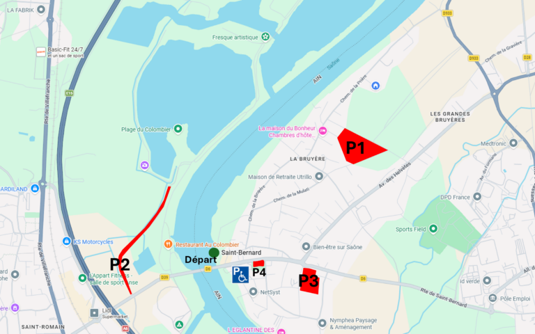 Le stade de Saint-Bernard est proche du pont de la Saône et du centre Village. Plusieurs parkings gratuit sont mis à votre disposition le jour de l’événement. Un parking réservé sera aménagé à proximité du départ pour les athlètes en situation de handicap.